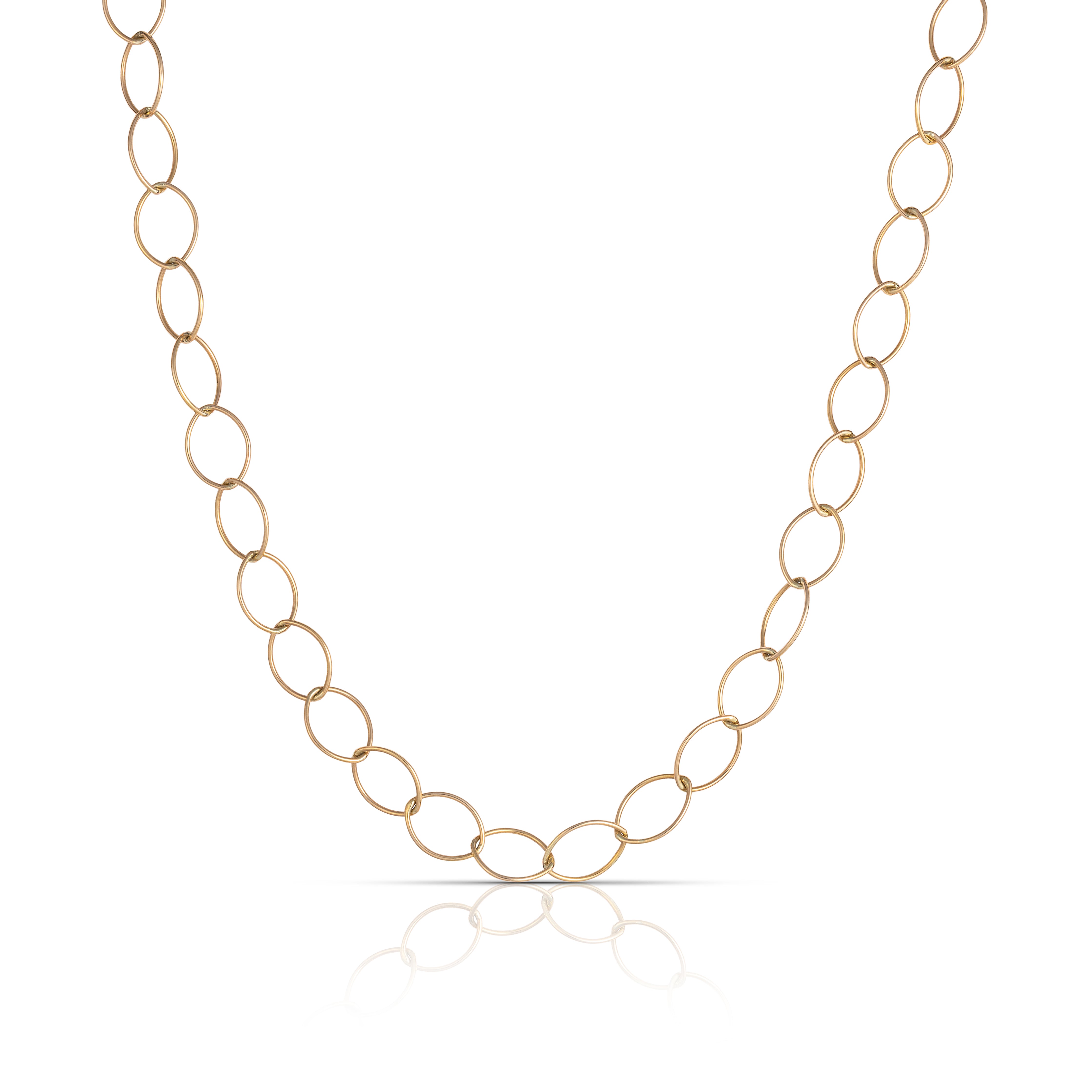 Elongated elliptical chain necklace featuring interconnected links of rose gold (27.7g)