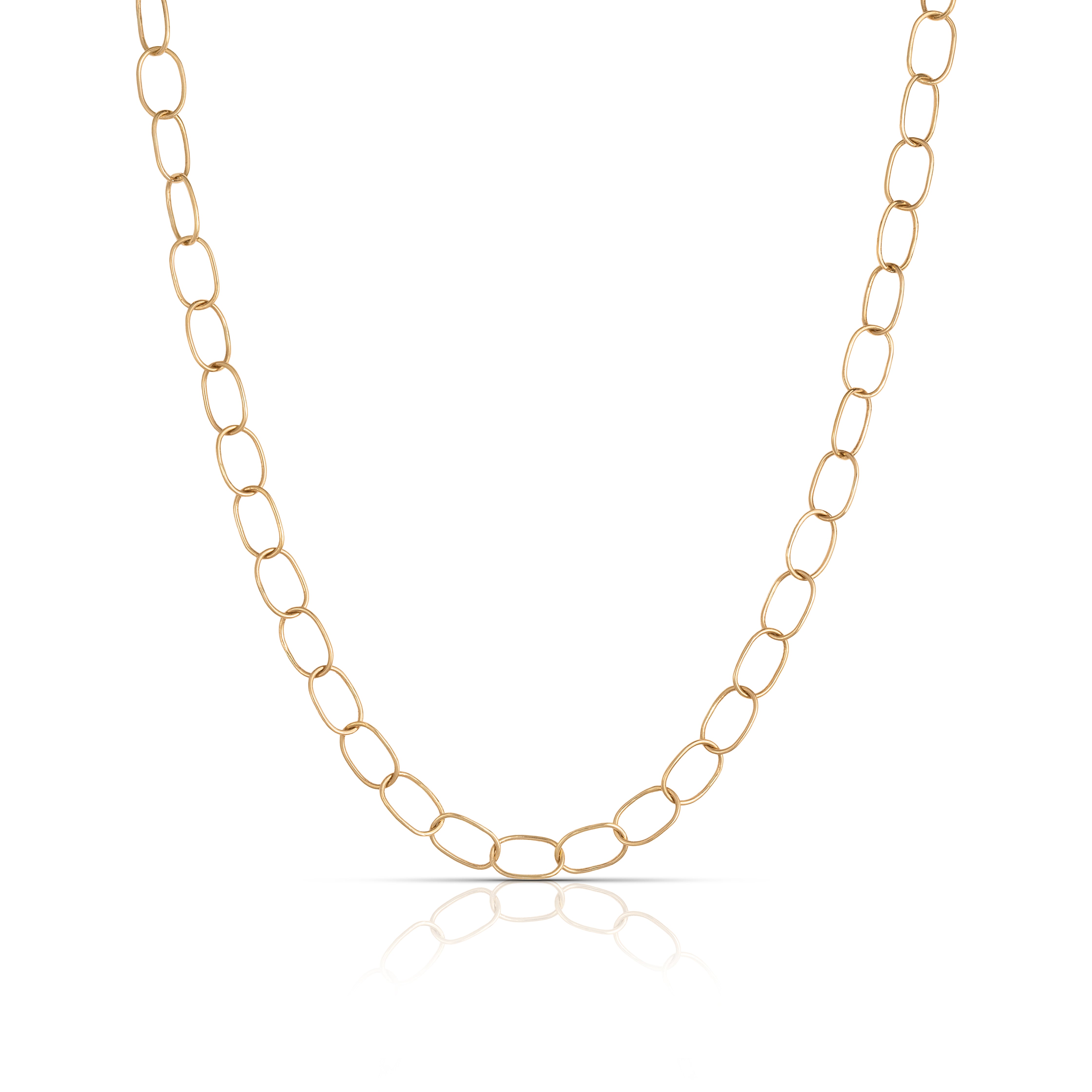 Elongated elliptical chain necklace featuring interconnected links of rose gold (27.2g)