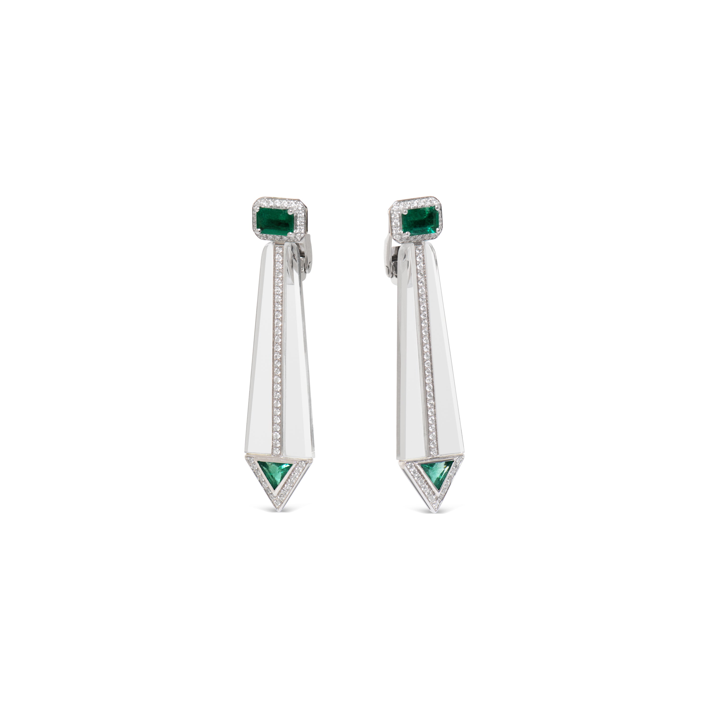 Earring in white gold (9.61g) studded with diamonds (0.57ct) and emeralds