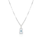Necklace in white gold (15.35g) set with diamonds (1.85ct) and blue topaz (0.33g) over a clear rock crystal pendant (6.12g)