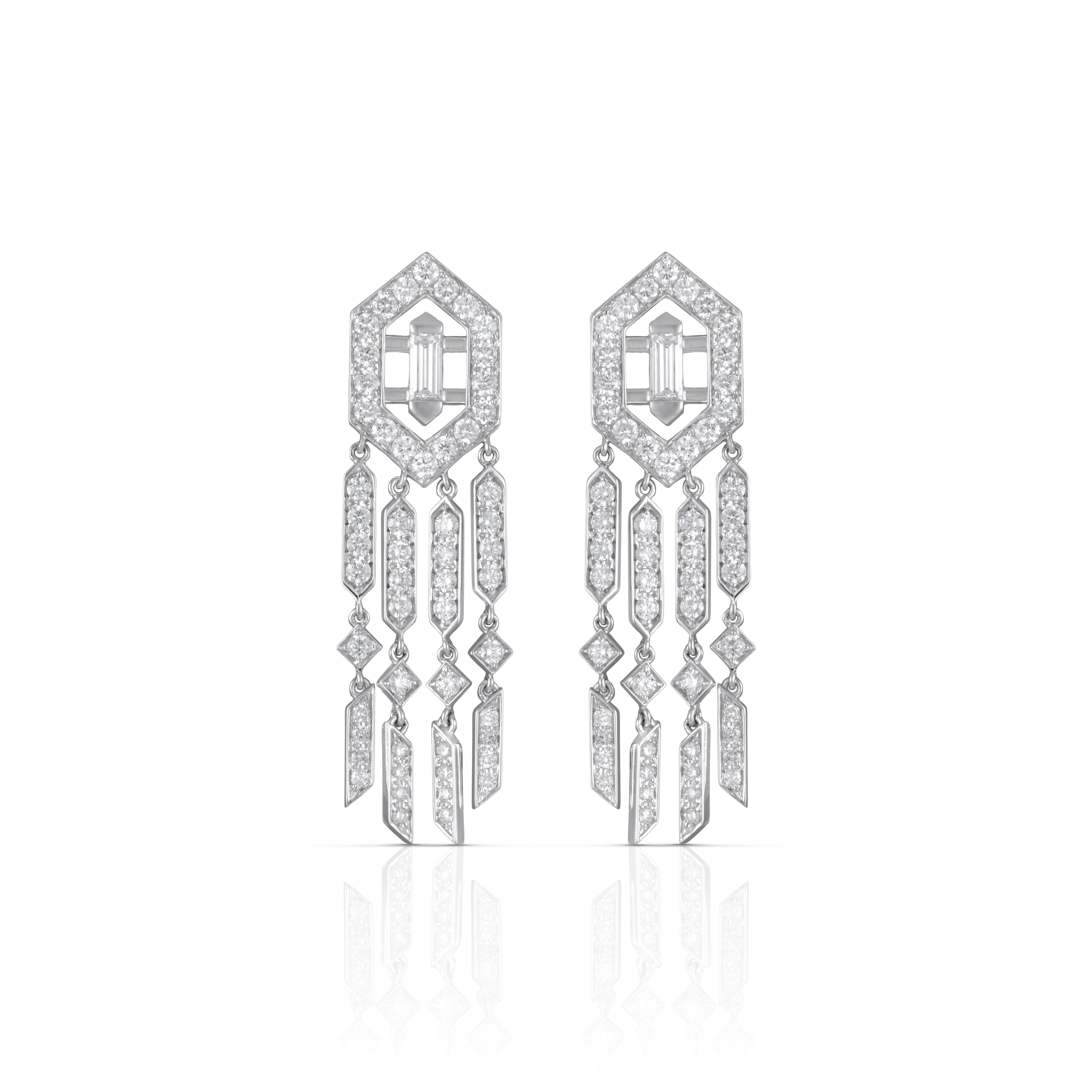 White gold long dangling earrings (11.3g) set with diamonds (3.8ct)