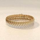 Link bracelet of connected folds in brushed yellow gold (31.87g) and set with diamonds (4.67ct)